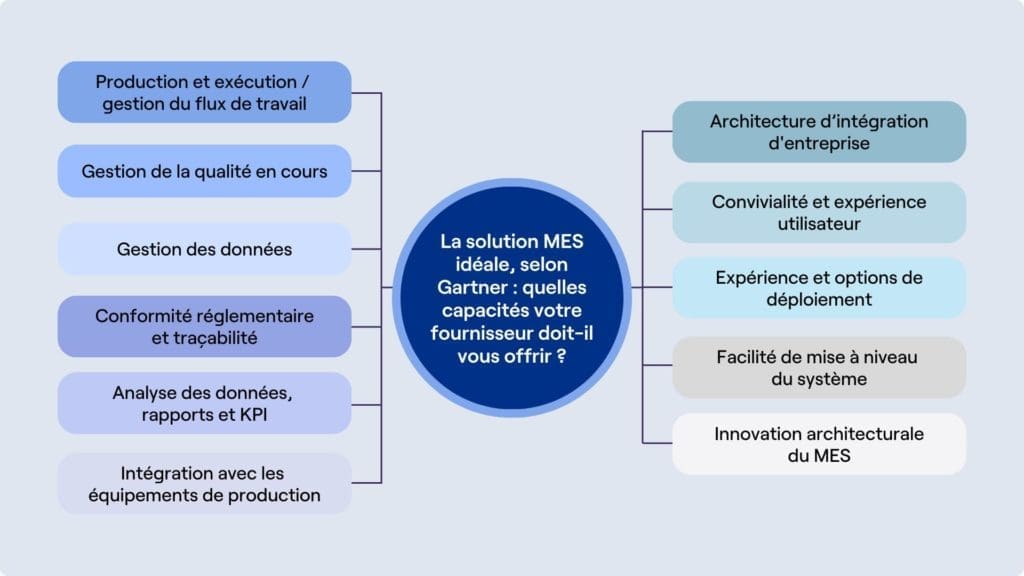 Selon Gartner, “la capacité d’intégration d’un MES se mesure à son ouverture et à sa compatibilité avec les environnements multifournisseurs, ainsi qu’à la disponibilité de bibliothèques de connexion et de kits de développement pour faciliter ce processus”.